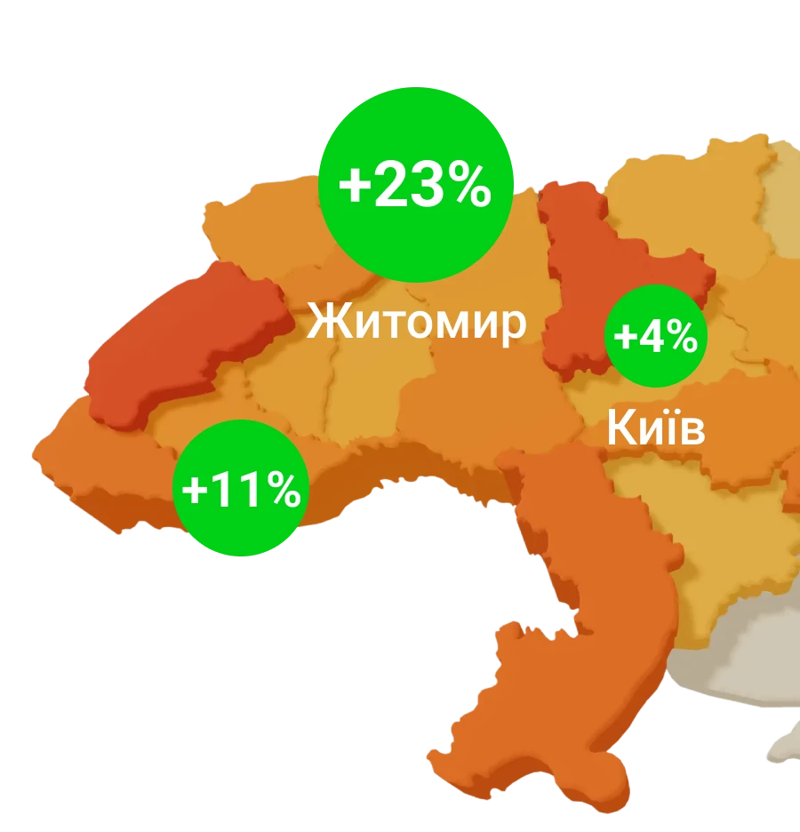 За даними ЛУН, середня вартість квадратного метра на первинці росте по всій Україні. Найшвидше - в Житомирі, де ціни залишаються на середньому рівні, та в Одесі, де ціни швидко наздоганяють столичні.