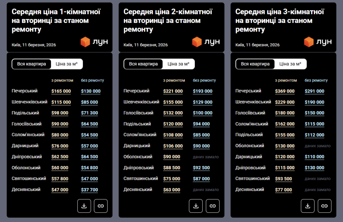 ЛУН дізнався, в яких районах столиці на вторинці вигідніше шукати «голі стіни», а в яких - квартиру з ремонтом