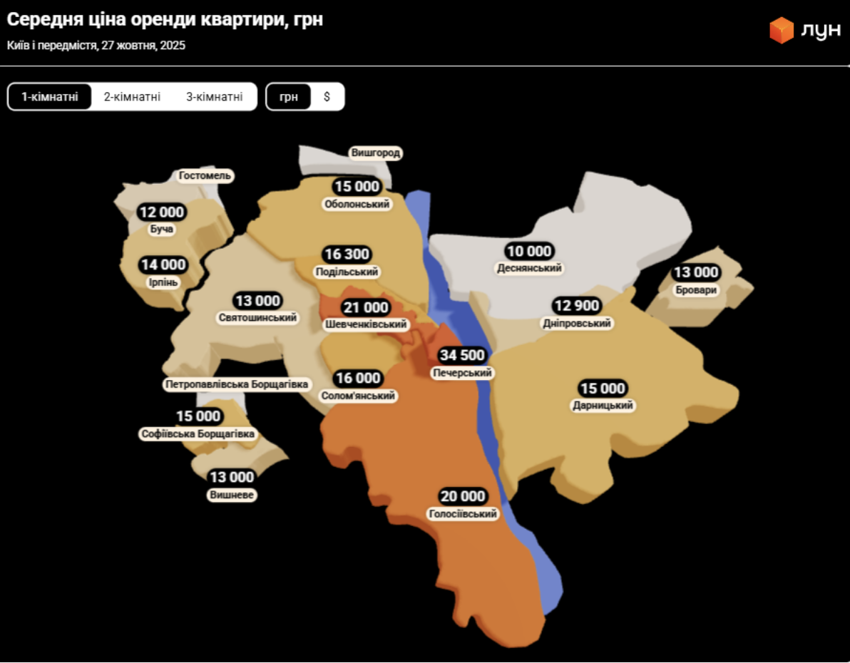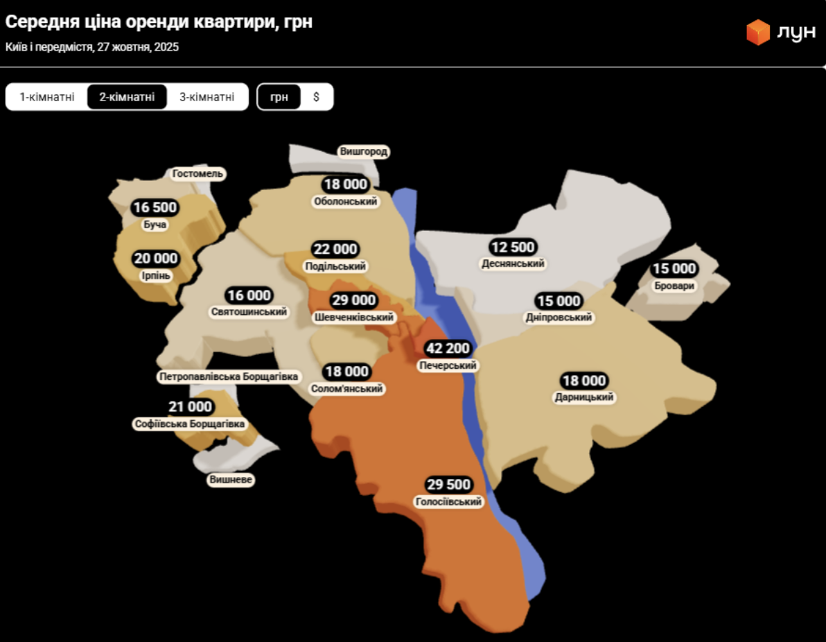 За даними ЛУН, наприкінці жовтня орендувати квартиру в Деснянському районі столиці було дешевше, ніж у передмісті