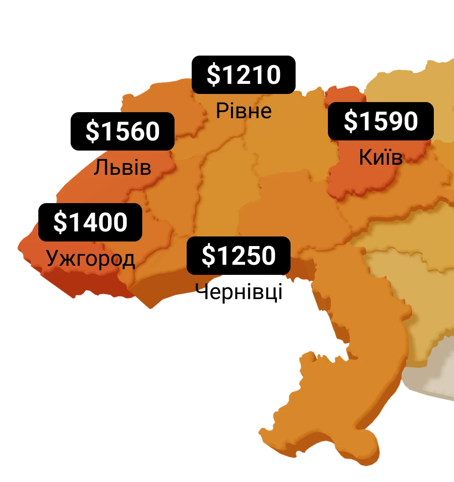 Третє місце за найвищою вартістю квадратного метра посів Ужгород - середній «квадрат» в місцевих 1-кімнатних зараз коштує $1400. Цікаво, що 6 місяців тому його ціна була така сама, а ось подорожчання рік до року становить більше 10%.