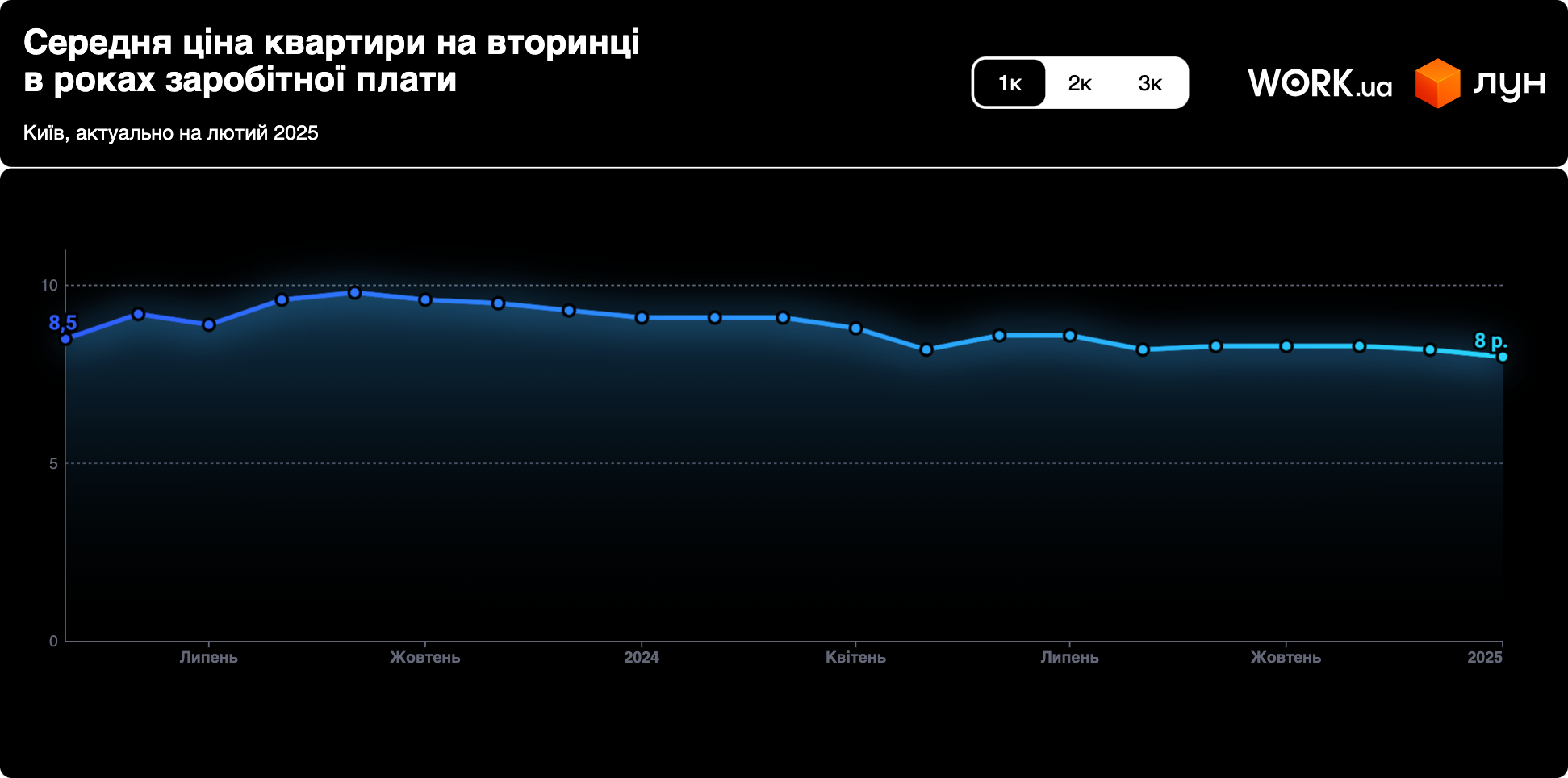 8 середніх річних зарплат коштує 1-кімнатна квартира в столиці в лютому 2025 року