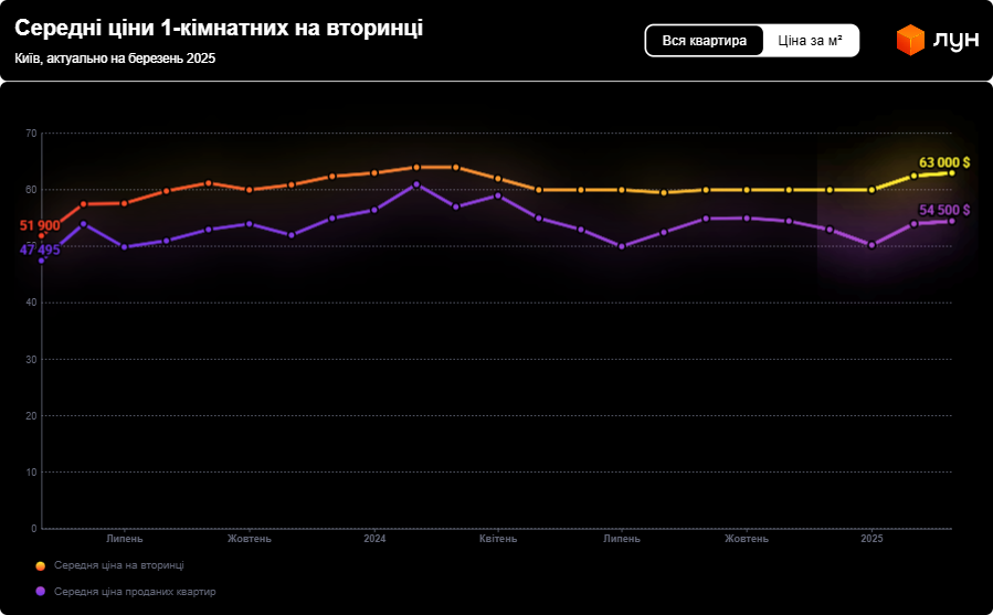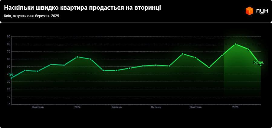 В березні 2025 року квартира в Києві продається, в середньому, за 52 дні
