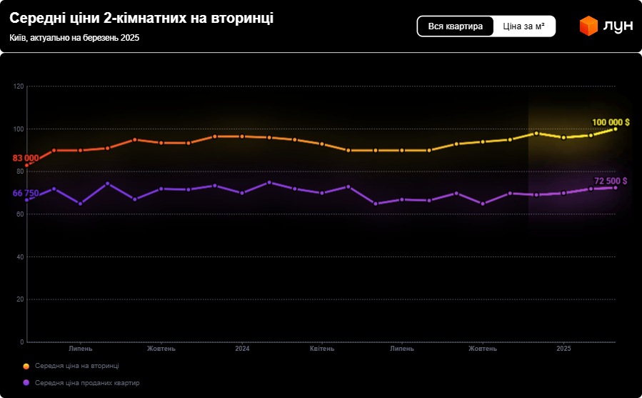 Такий тренд може означати, що столична вторинка стає менш динамічною: продавцям треба більше часу на пошук покупця, а покупцям необхідно більше часу на прийняття рішення про купівлю квартири.