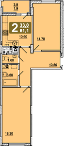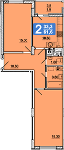 61.6 м²
