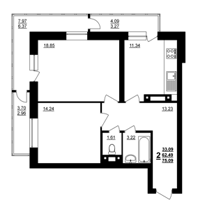 75.09 м²