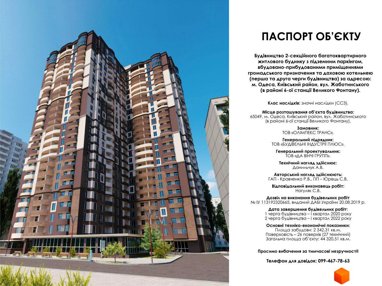 Київський районний суд м. Одеси задовольнив заяву про забезпечення позову та ухвалив: накласти арешт на об'єкт незавершеного будівництва (у тому числі на його складові частини: квартири, комори, паркінги, нежитлові та офісні приміщення) розташований за адресою: м. Одеса, Київський район, вул. Жаботинського, 3/1 (в районі 6-ої станції Великого Фонтану), на земельній ділянці кадастровий номер 5110136900:12:016:0017.