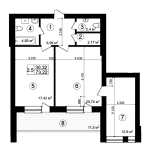 73.4 м²