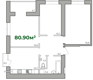 80.9 м²