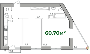 60.7 м²