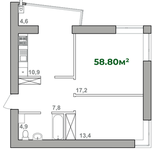 58.8 м²