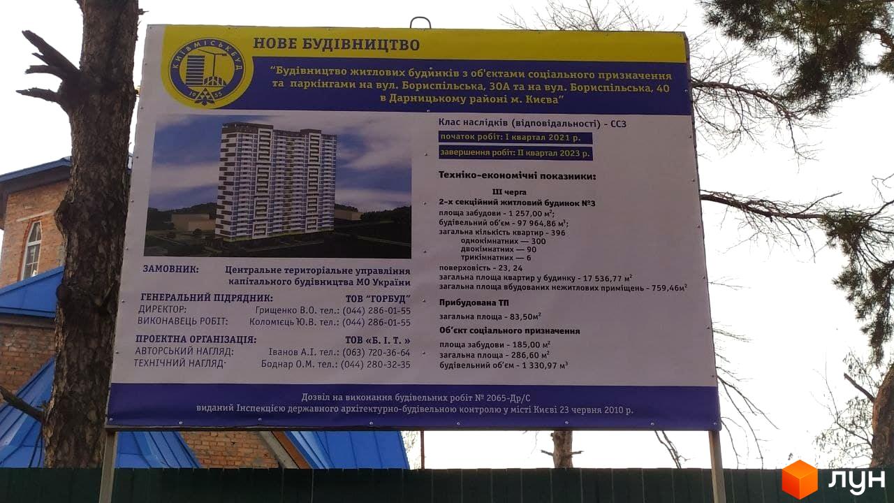 Ухвалою Печерського районного суду м. Києва від 12.03.2019 р. справа № 757/11163/19-к в рамках кримінальному провадженні № 42019110330000024 від 26.12.2019 р. за ознаками кримінальних правопорушень, передбачених ч. 2 ст. 364 та ч. 3 ст. 426 КК України, накладено арешт на земельні ділянки з кадастровими номерами 8000000000:63:427:0005 (м. Київ, Бориспільська, 30А) 8000000000:63:389:0023 (м. Київ, Бориспільська, 40), що перебувають у приватній власності ТОВ «Реалбуд Інвест», із забороною відчуження, розпорядження та користування майном.
