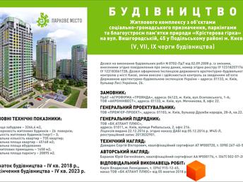 - Повідомлення про зміну даних у дозволі на виконання будівельних робіт ІУ123182571764 від 14.09.2018 року (Будівництво житлового комплексу з об'єктами соціально-громадського призначення, паркінгами та благоустроєм пам'ятки природи "Крістерова гірка")