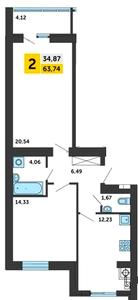 63.74 м²