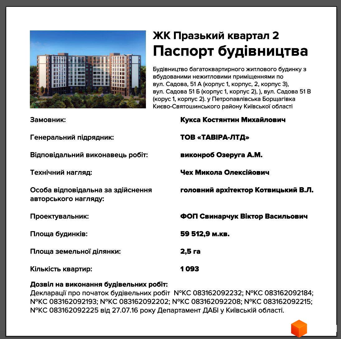 18 лютого 2019 Київський окружний адміністративний суд відмовив у відкритті провадження за позовом ДАБІ України до ОСОБА_1 про зобов'язання знести об'єкт самочинного будівництва, а саме: Багатоквартирний житловий будинок з вбудованими нежитловими приміщеннями та вбудованим гаражем за адресою: Київська область, Києво-Святошинський район, Петропавлівська Борщагівка, вул. Садова, 51АБВ (кадастровий номер земельної ділянки - 3222485901:01:039:0002)