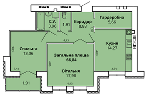 68.97 м²