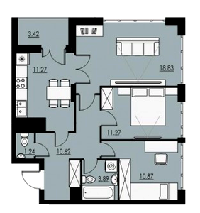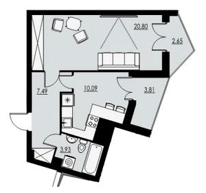 42.83 м²