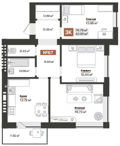 76.79 м²