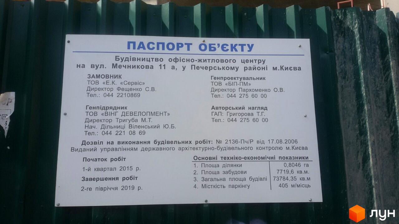 В рамках кримінального провадження №42018100000000807, Голосіївський суд Києва 02 жовтня 2018 року постановив накласти арешт на земельну ділянку по вул. Мечникова, 11-А (8000000000:82:026:0026), який знаходиться в оренді ТОВ «Експлуатаційна компанія Сервіс» і недобудований об'єкт нерухомості, розташований на ньому — ЖК «Signature», а також заборонити проведення будь-яких будівельних та інших робіт, вище 16 (шістнадцятого) поверху на недобудованому об'єкті нерухомості розташованого на земельній ділянці (8000000000:82:026:0026), і на недобудованому об'єкті нерухомості, який розміщений на ньому — ЖК «Signature».