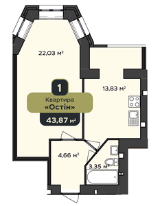 43.87 м²