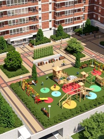 Забудовники економ-сегменту думають не тільки про помешкання, а турбуються і про упорядковану прибудинкову територію. Облаштовують зони відпочинку, спортивні й дитячі майданчики.