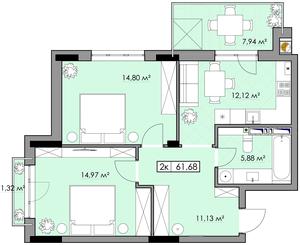61.68 м²