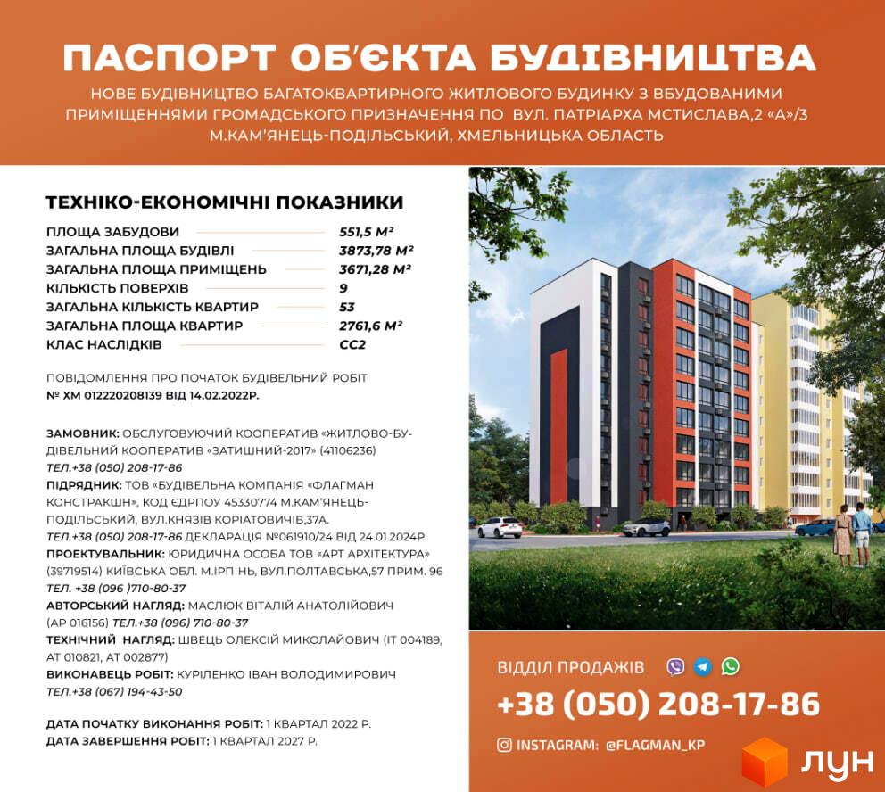 Видано Департаментом містобудування та архітектури Кам'янець-Подільської міської ради, МУО №1173 від 17.02.2020 року
