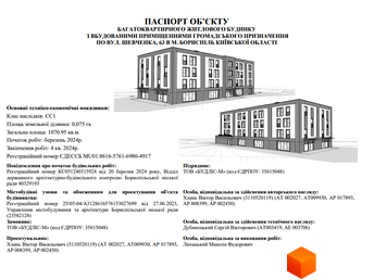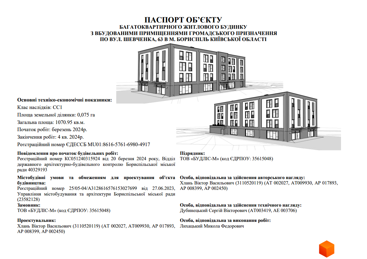 Повідомлення про початок виконання будівельних робіт КС051240315924 від 20.03.2024 року (Нове будівництво багатоквартирного житлового будинку з вбудованими приміщеннями громадського призначення)
