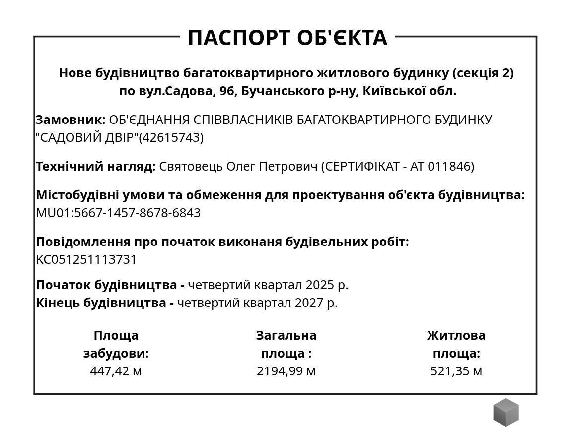 - Повідомлення про початок виконання будівельних робіт КС051251113731 від 14.11.2025 року (секція 2)