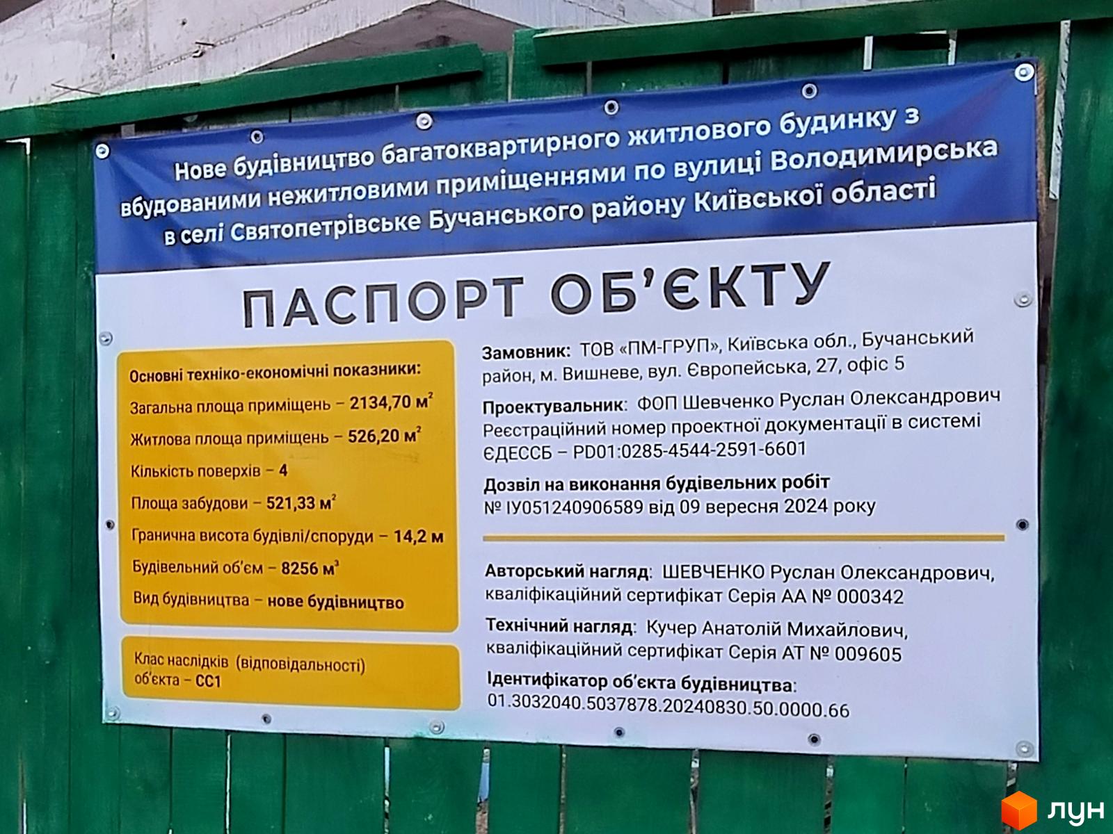 - Повідомлення про початок виконання будівельних робіт ІУ051240906995 від 9.09.2024 року (Нове будівництво багатоквартирного житлового будинку з вбудованими нежитловими приміщеннями)