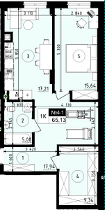 65.13 м²