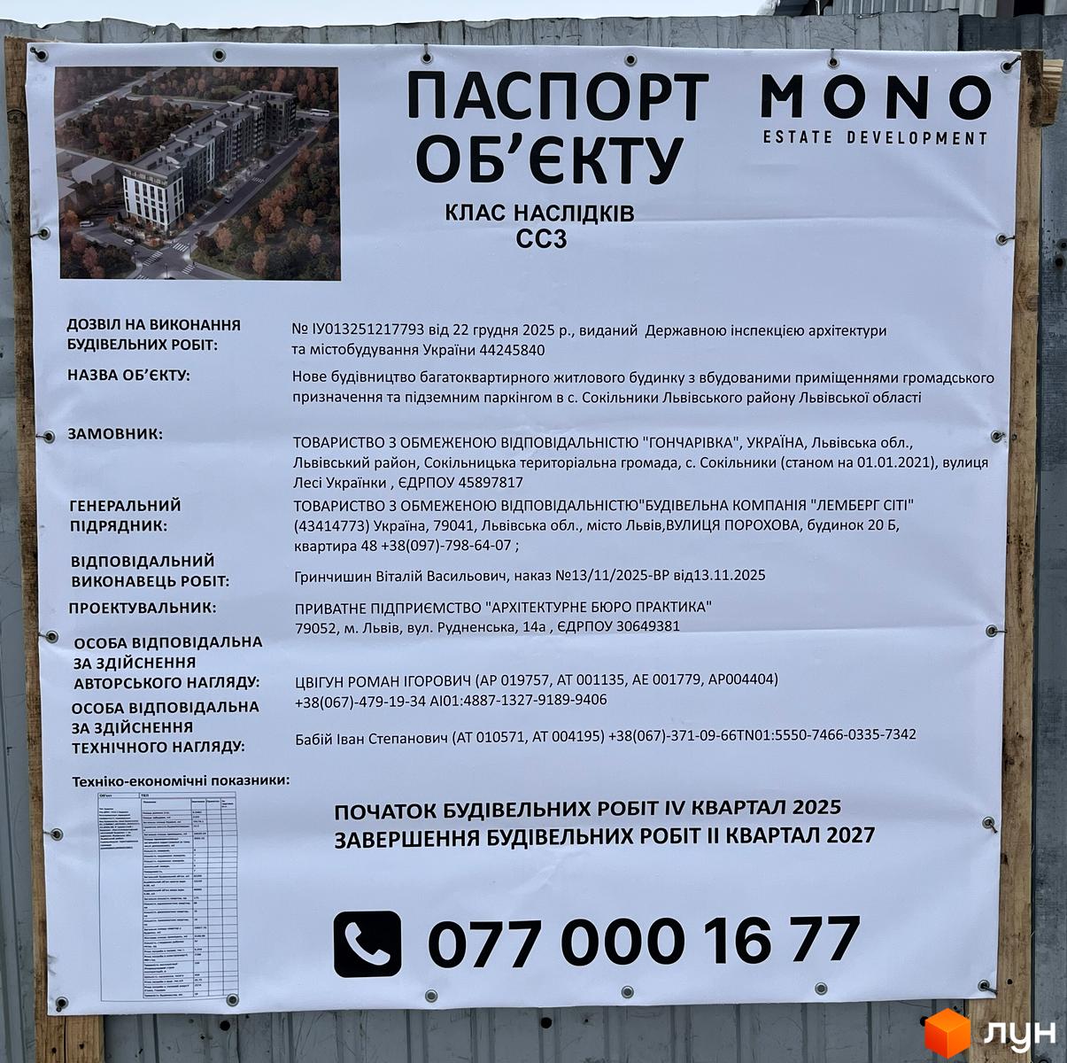 Видано Відділом архітектури та містобудування Сокільницької сільської ради, МУО № 56/02-1/25 від 27.06.2025 року (Інформацію надано забудовником. На цей час документ відображається в реєстрі в скороченому варіанті)