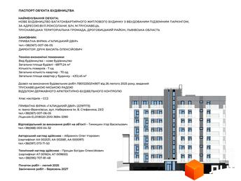 Дозвіл на виконання будівельних робіт ЛВ012250214907 від 26.02.2025 (Нове будівництво багатоквартирного житлового будинку з вбудованим підземним паркінгом)