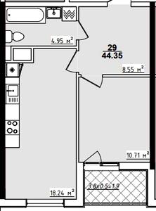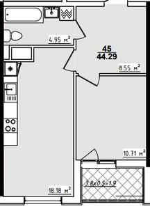 44.29 м²