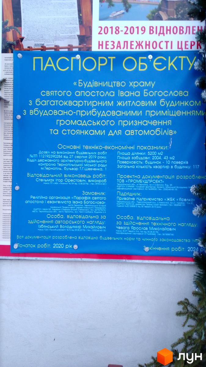 - Cертифікат ТП122250212827 від 18.02.2025 року (Будівництво храму святого апостола Івана Богослова з багатоквартирним житловим будинком з вбудовано - прибудованими приміщеннями громадського призначення та стоянками для автомобілів)