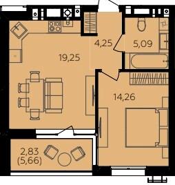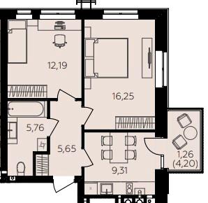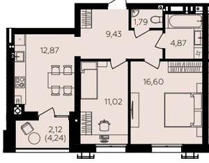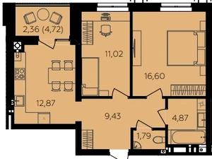 57.28-58.7 м²
